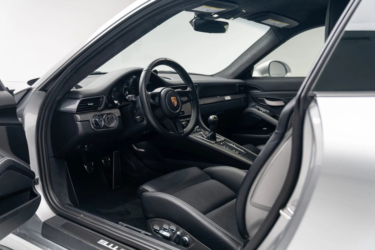 No interior, a cabine é cortada em couro preto com costura de prata GT e detalhes em painel de fibra de carbono. São incluídos assentos esportivos adaptativos aquecidos, gerenciamento de comunicação da Porsche com navegação, um sistema de som surround de Bose, o pacote de design de luz e os espelhos de escurecimento. Os mostradores analógicos apresentam um velocímetro de 225 mph e um tacômetro com uma linha vermelha de 8.600 rpm, com o odômetro digital mostrando apenas 3.600 milhas.
